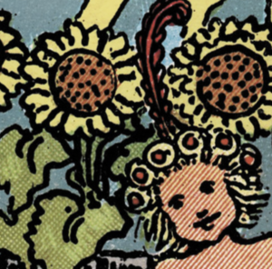 En el arcano El Sol, los girasoles crecen orientados hacia la luz.